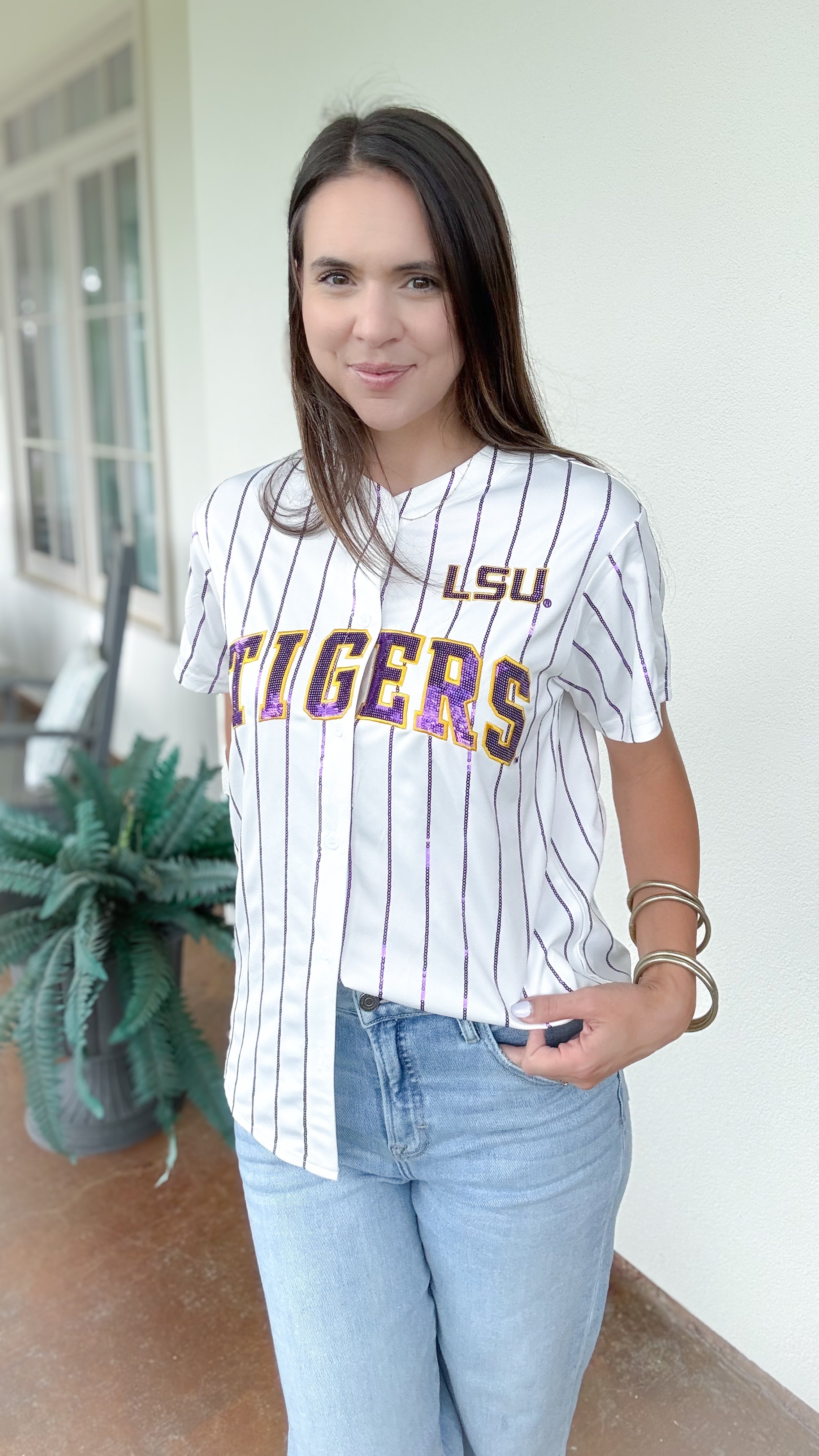 Embroidered LSU chest detail