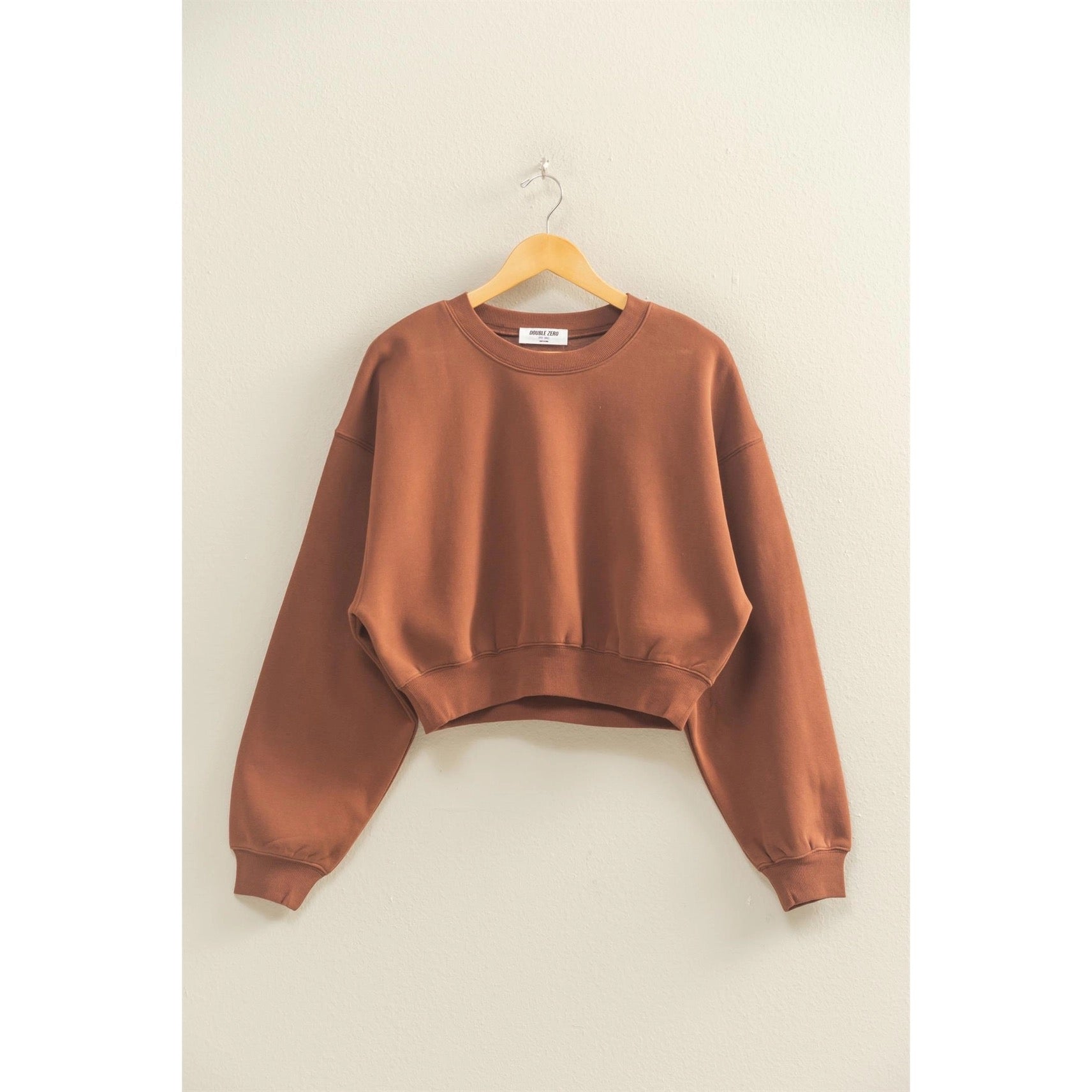 This sweatshirt paired with some jeans makes a cute fall outfit. The pullover style bodice comes with a crew neckline, long sleeves and drop shoulders. The relaxed silhouette ends in a banded hem, making it perfect to throw on when you are on the go.