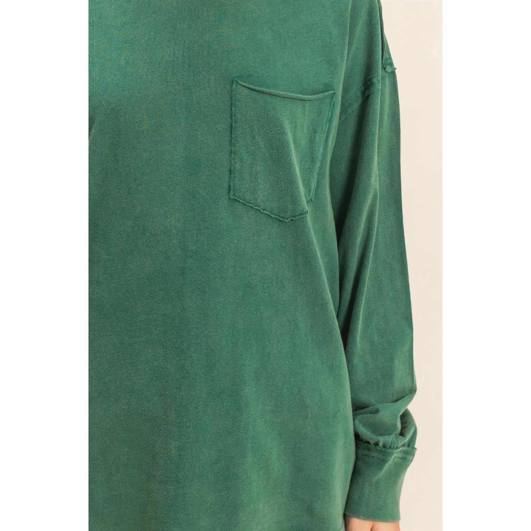 Elevate Your Casual Wardrobe With This Oversized Washed Long Sleeve Pocket Tee. Featuring A Relaxed Fit And A Stylish Chest Pocket, This Tee Is Perfect For Layering Or Wearing On Its Own. Made From A Soft, Comfortable Fabric, It Offers All-Day Comfort And A Laid-Back Look. The Long Sleeves And Simple Design Make It A Versatile Addition To Any Closet, Ideal For Both Lounging And Casual Outings. 100% Cotton