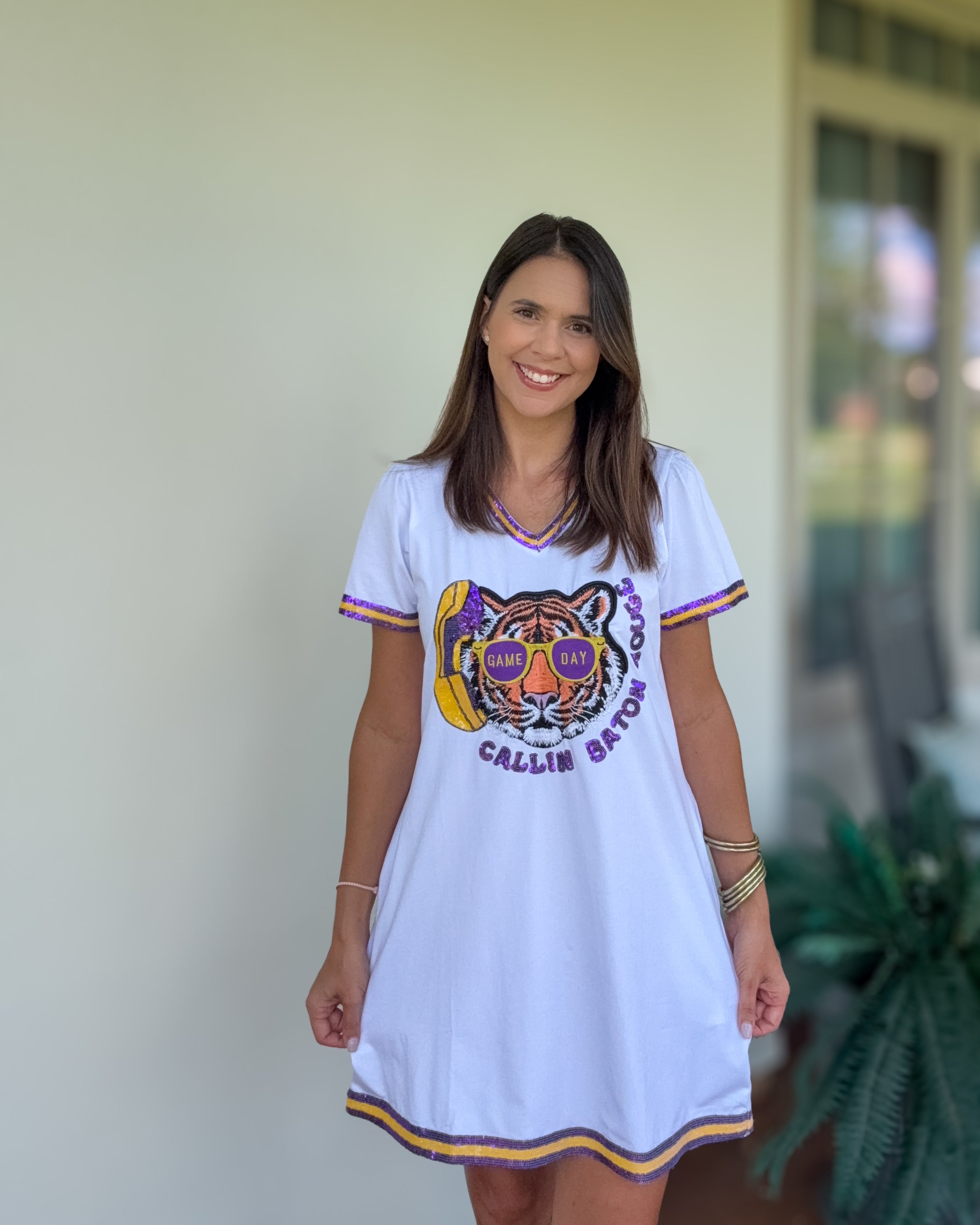The Tiger is Embroidered and has sequin phone detail and trim!